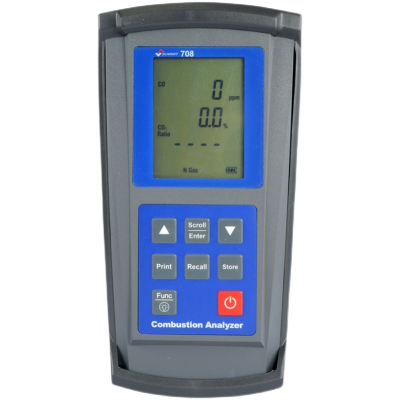 Func功能鍵用于選擇708的功能模式,讓您可以設定708作為一個燃燒分析儀,壓力表,溫度計,或可燃檢漏儀。此外,該功能鍵可用來訪問日期/和時間顯示。有關功能鍵的更多信息見第6條,