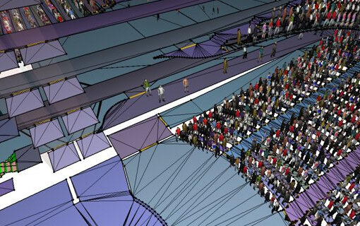 -Pathfinder西寧人員疏散能力模擬分析軟件還專門提供了高性能可視化的3D時(shí)間歷程模擬,利用透明化功能來更好地顯示密集人群在樓層中的疏散情況。