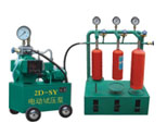 如初次使用試壓泵,高壓膠管先不要與工作臺連接,先把管頭放在試壓泵吸水管處。接通電源,啟動電機,檢查放水閥(卸壓閥)是否關閉,如是開啟狀態,請關閉。主要起到排氣排水的作用。如果膠管口排水水流勻稱后,再與工作臺連接。如試壓一具滅火器,需要把快速接頭拔下,再夾具上把其于裝滿水的滅火器擰緊(需要加“0”型圈),然后裝在試驗臺上。把其它接頭的控制開關關閉,然后打開放水排氣,開始設定電接點壓力表,應從低壓力向高壓力設定。
